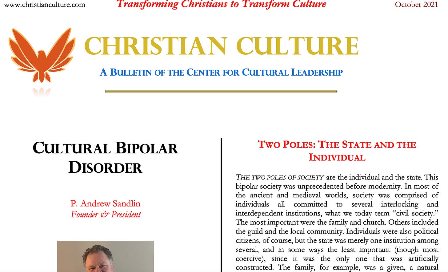 CCL publishes a unique bi-monthly hard copy newsletter available via USPS. The October article is “Cultural Bipolar Disorder.” If you’d like to get a copy for free, please private Facebook message me your surface mailing address or send an email to: sandlin[at]saber[dot]net.
